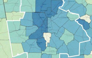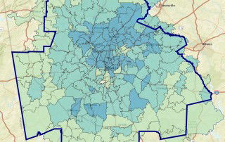 This week's Monday Mapday explores time spent online in the Atlanta metropolitan statistical area (MSA). The map below shows the percentage of the adults,* by zip code, that spent an average of 2 to 4.9 hours online in a typical day. Areas shaded in dark blue (including areas of Cherokee, Cobb, DeKalb, Fayette, Forsyth, [...]