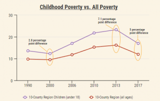 Generational poverty is an ongoing problem in the metro area. Here's a look at how things have (and haven't) changed since 1990. Editor's note: This post was updated on May 16, 2019 to correct for errors in the 10-county area data and 2017 county-level data.