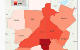 A view into which Metro Atlanta counties are most likely to see residents skip or reduce the size of meals due to a lack of financial resources.
