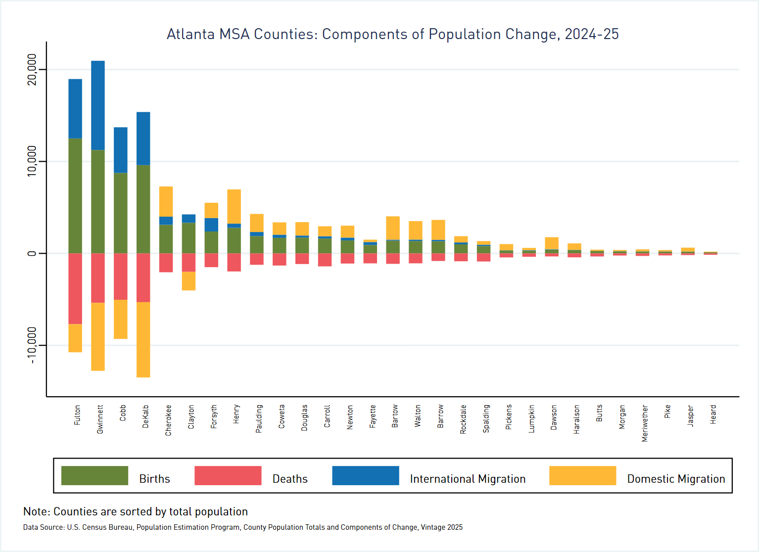 Figure 1 presents components of change for the 29 counties comprising the Atlanta MSA[2] over the 2024-25 period.[3]